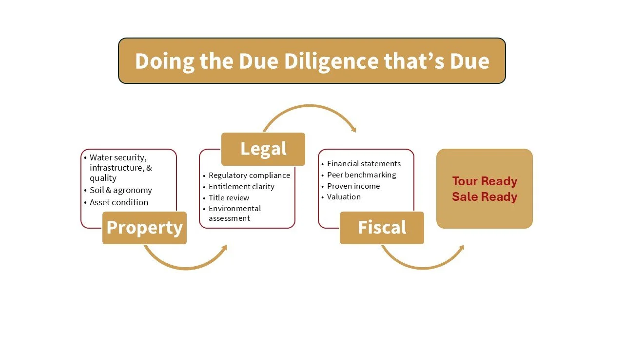Farmland assets in the US represent an up to $3.4 trillion market of which about $71 billion are permanent crops. These remains largely untapped by Institutional, family office, and high net worth individual capital with about 2% - 3% held by institutional investors, in part due to its inherent illiquidity. While technological innovations like fractionalization and tokenization may offer a path toward tradable agricultural securities, the bridge to liquidity relies on validated, standardized, and transparent due diligence. This paper explores how rigorous property, legal, and financial due diligence can transform farmland from a "black box" investment into a more liquid, highly transparent asset class.